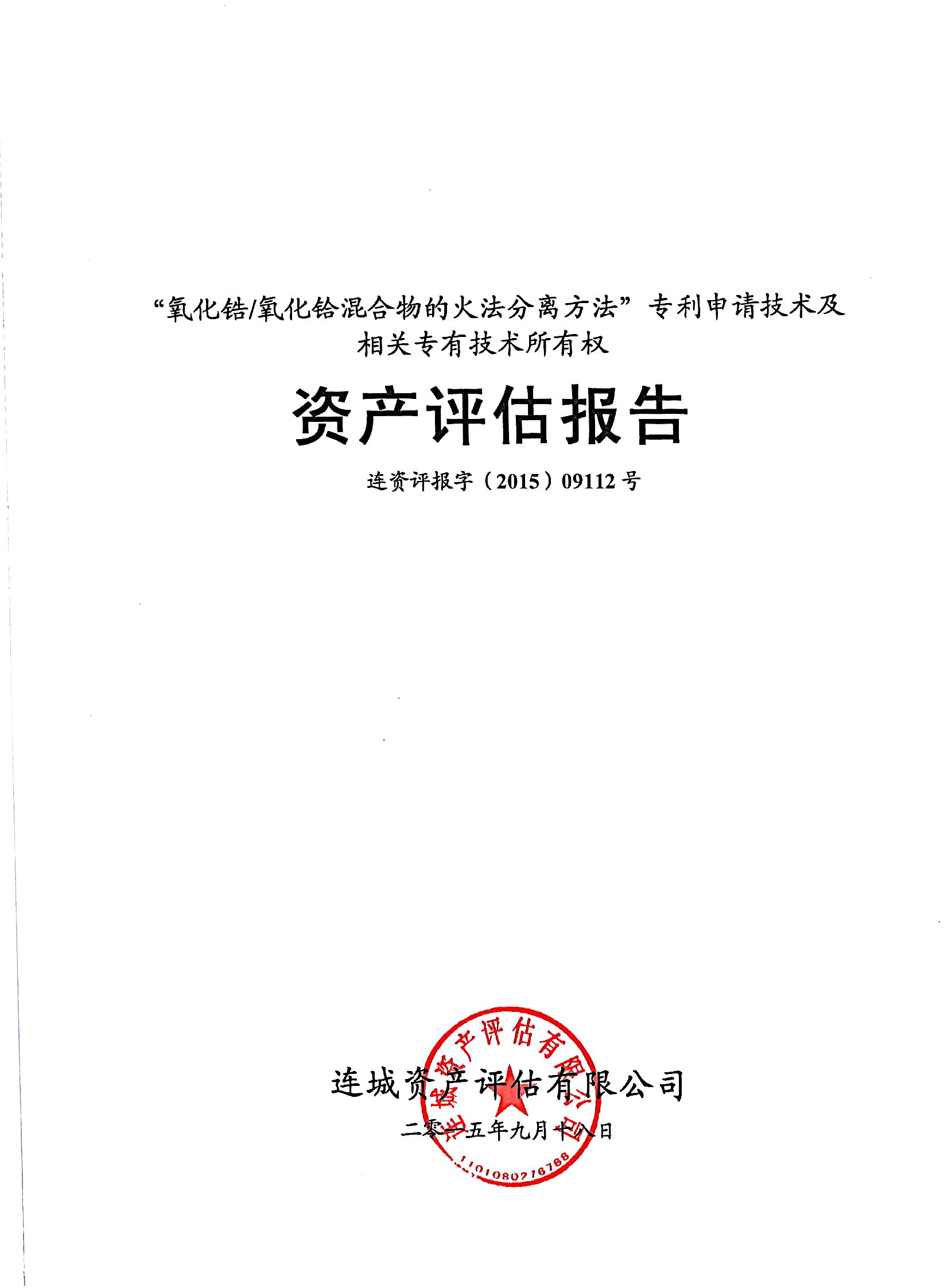 连城资产评估有限公司对我公司“氧化锆/氧化铪混合物的火法分...
